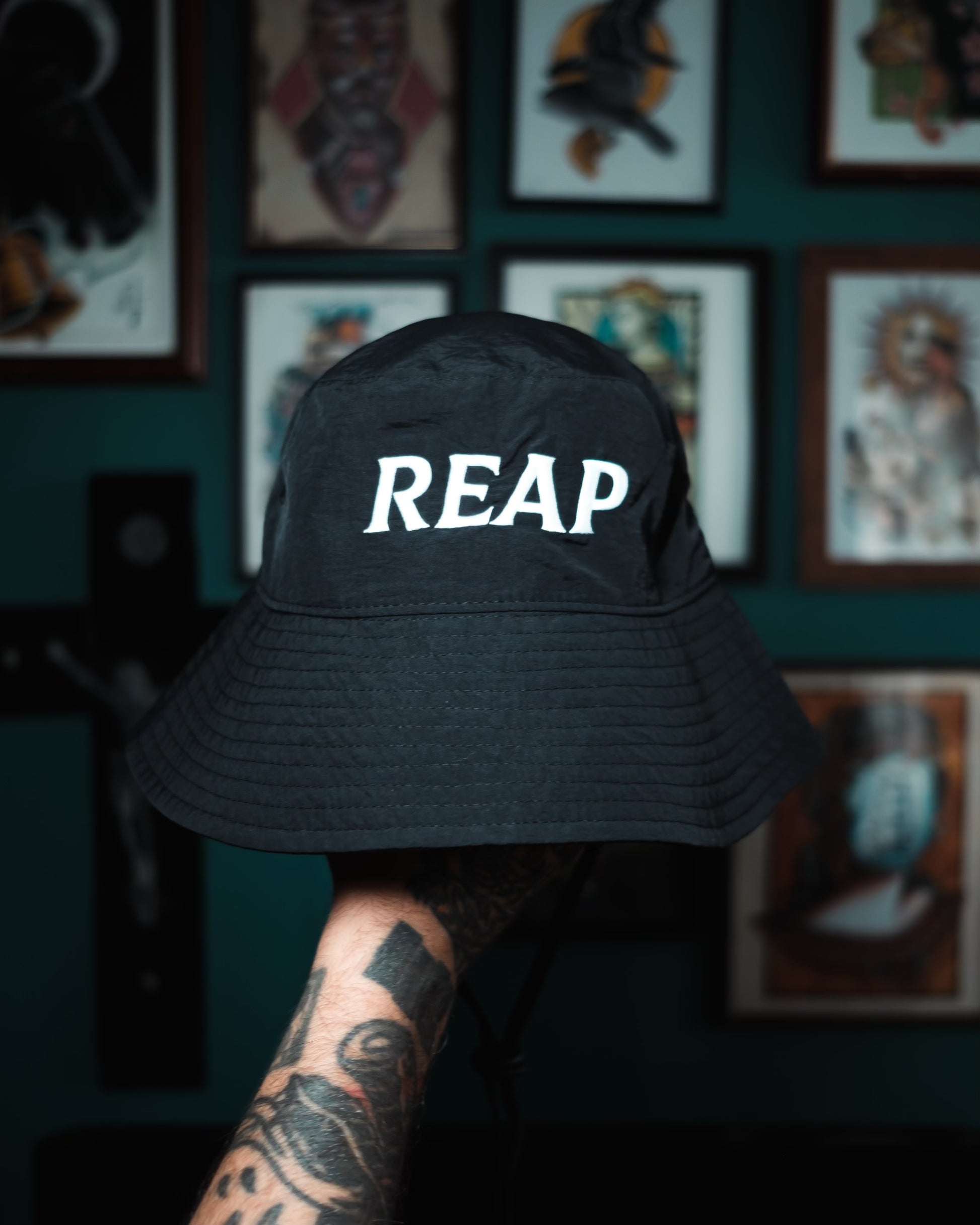 Perfect for the unpredictable British weather, these comfortable & stylish bucket hats will keep your head dry during those festival downpours, and protect ya neck from the burning sun. Black material with a white embossed embroidered logo.
